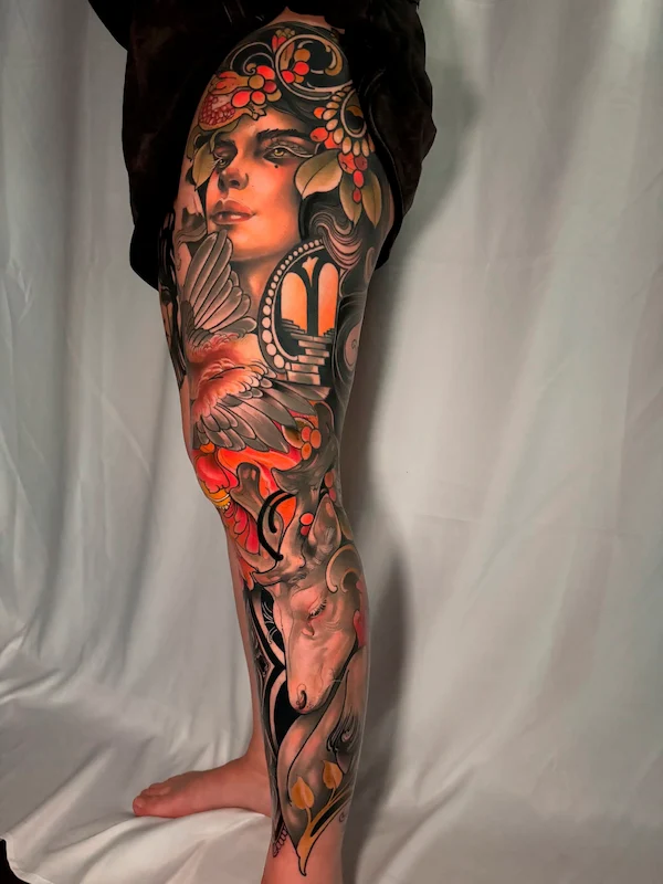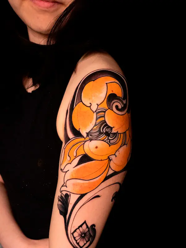 Art Nouveau, Neotraditional, Ornamental. Three traditions, united to create tattoos that could hang on a wall. In New York City for a brief period of time.
